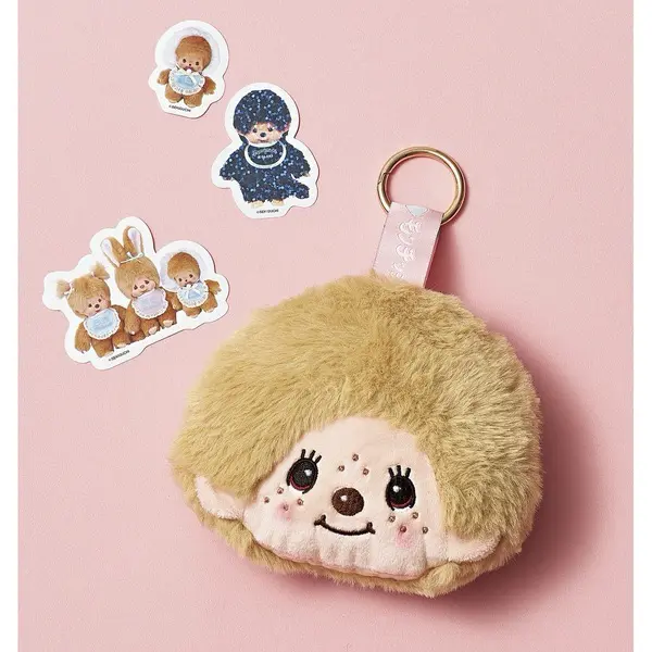 増刊号の付録は、モンチッチのフェイスポーチ&シール3点のセット。持っているだけで気分が上がるキャッチーなアイテムは、どれもここでしか手に入らない