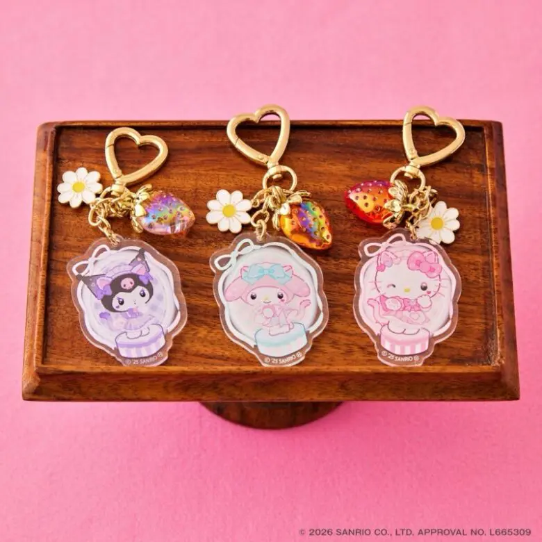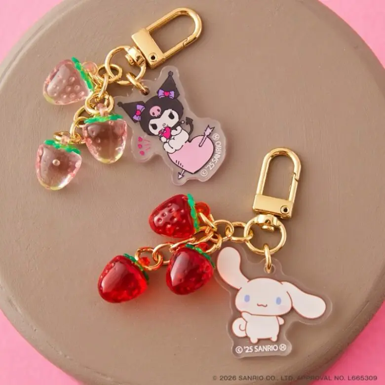 ハローキティ、シナモロール、マイメロディ、クロミと、きらきらのさくらんぼやいちごが組み合わされた、可愛い全12種類のチャームが登場。バッグやスマホに付けたり、キーチャームにしたりと楽しみ方はいろいろ。全部可愛いから、いっぱい集めてたくさんつけるのもおすすめ!