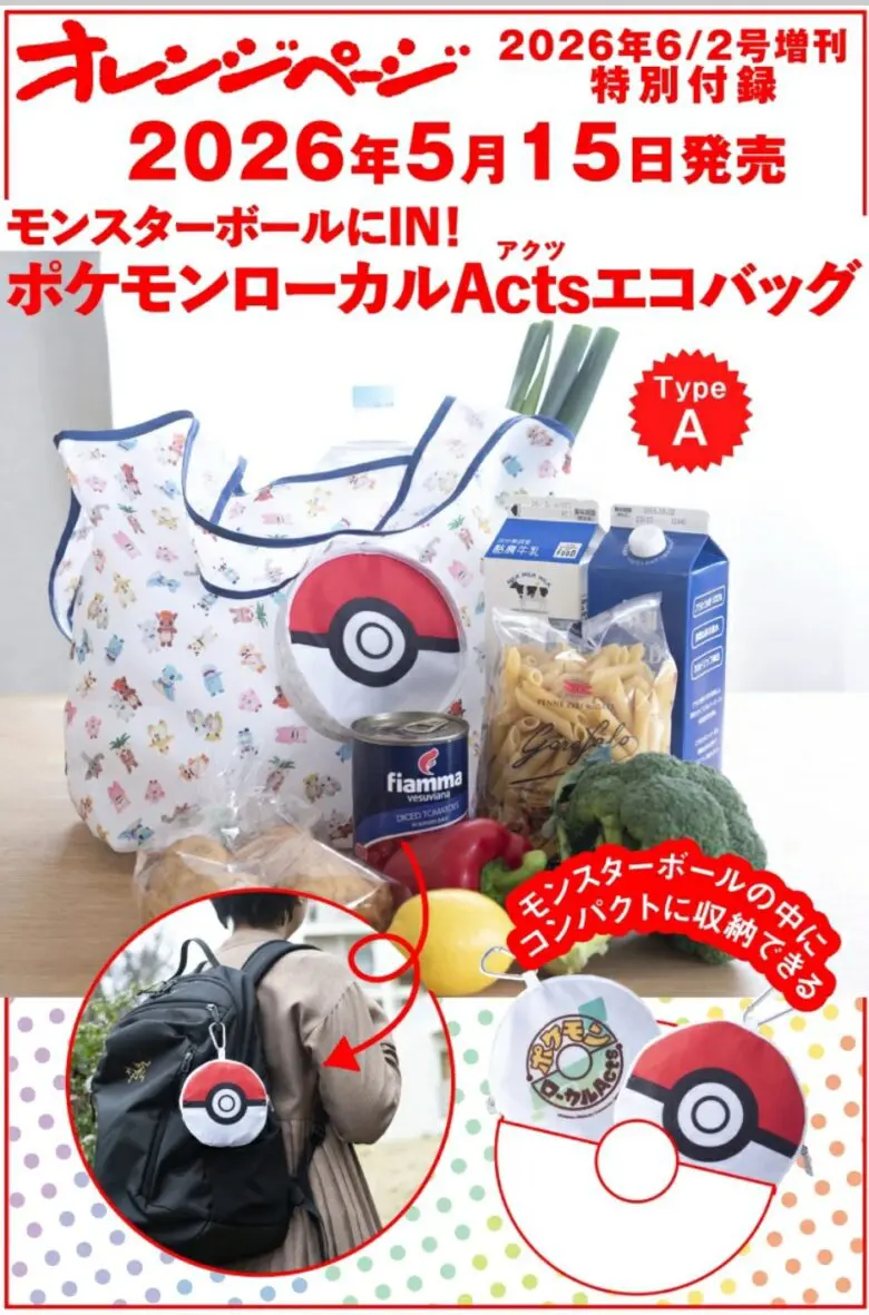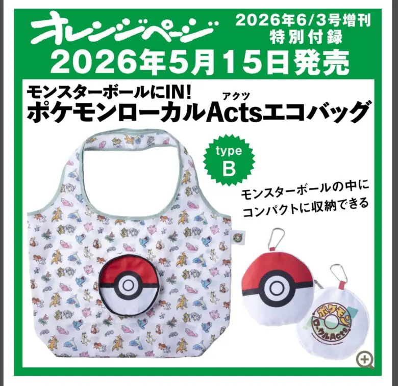 今回のご紹介は5/15発売のオレンジページ 2026年 6/2号増刊「モンスターボールにIN! ポケモンローカルActs エコバッグ